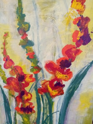 In Farben eintauchen, die Zeit vergessen, zu spielen, zu spachteln, zu schütten, auch mal den Pinsel mit einem trockenen Ast eintauschen (Tuschearbeiten), das ist nach wie vor für mich ein beständiges Lebenselexir. Am meisten erfreue ich mich an Elementen und Effekten, die sich spontan und ohne viel Dazutun ergeben. Mein Malen ist ein Bekenntnis zur Farbe, interessant ist , wie sie wirkt, harmonisiert, abgrenzt, eindeutig ist, Zeichen setzt und Gefühle hervorlockt.